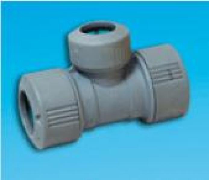 Drugi z trójników redukcyjnych. Redukcja średnicy występuje na króćcu środkowym, w osi pionowej (w górę). Przelot jest tej samej średnicy. stosowany do wykonania odgałęzienia (odnogi) z redukcją średnicy. Trójnik o średnicy 22, 28 mm dostępny jest w wersji rozbieralnej. Nierozbieralny jest tylko w średnicy 22 mm.